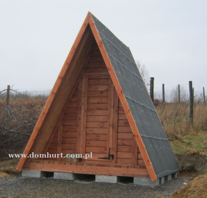 Mały domek ogrodowy o szerokości 300 cm z możliwością wydłużania o wielokrotność 105 cm. Domek stawiany na bloczkach betonowych - nie wymaga fundamentu. Ogólny schemat domku można zobaczyć w dodatkowych fotografiach.