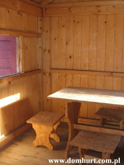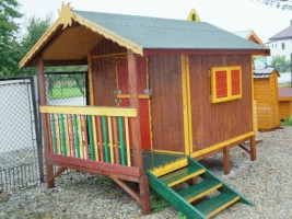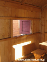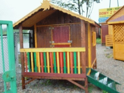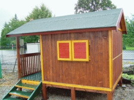 Domek dla dzieci o wymiarach 180 x 270 cm wykonany systemem szkieletowym. W cenie domu uwzględniono drzwi dwuczłonowe, okiennice, schodki, zadaszony ganeczek, dach kryty papą podkładową, bloczki betonowe. Istnieje możliwość wprowadzenia dowolnych zmian adaptacyjnych. Powierzchnia domku - 4,8 m2