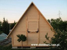 Domek ogrodowy (altanka) o szerokości 300 cm oraz wysokości 350 cm. Proponowany w różnych wersjach powierzchniowych. Oferowany w wersji nieocieplonej lub ocieplonej wełną 5 cm. W standardzie posiada jedno okno, schowek (pawlacz), dach dwuspadowy kryty blachą. W domku nieocieplonym półeczki w dolnej części domku. Posadowiony na bloczkach betonowych - nie wymaga fundamentu. Rozrys domku w dodatkowych fotografiach.