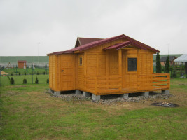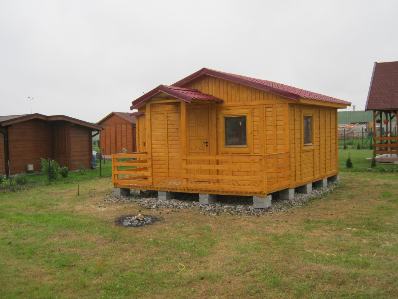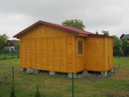 Przestronny domek parterowy w konstrukcji szkieletowej oferowany w wersji ocieplonej wełną 5 cm lub bez ocieplenia. Wejście do domu przez wiatrołap, który można zamienić na pomieszczenie gospodarcze lub łazienkę. Z przodu domu taras. Wnętrze domu pozwala na wygospodarowanie łazienki, kuchni, salonu oraz sypialni. Dom oferowany jest o powierzchni od 25 m2. Jego konstrukcja umożliwia wprowadzanie wszelakich zmian adaptacyjnych takich jak: wykonanie antresoli czy też zadaszenia na samochód. Schemat budynku można zobaczyć w dodatkowych fotografiach. Cena nie obejmuje wydzieleń wewnętrznych widocznych na zdjęciach i rzutach domu.
