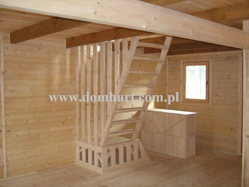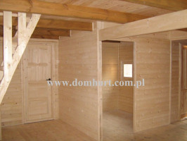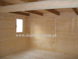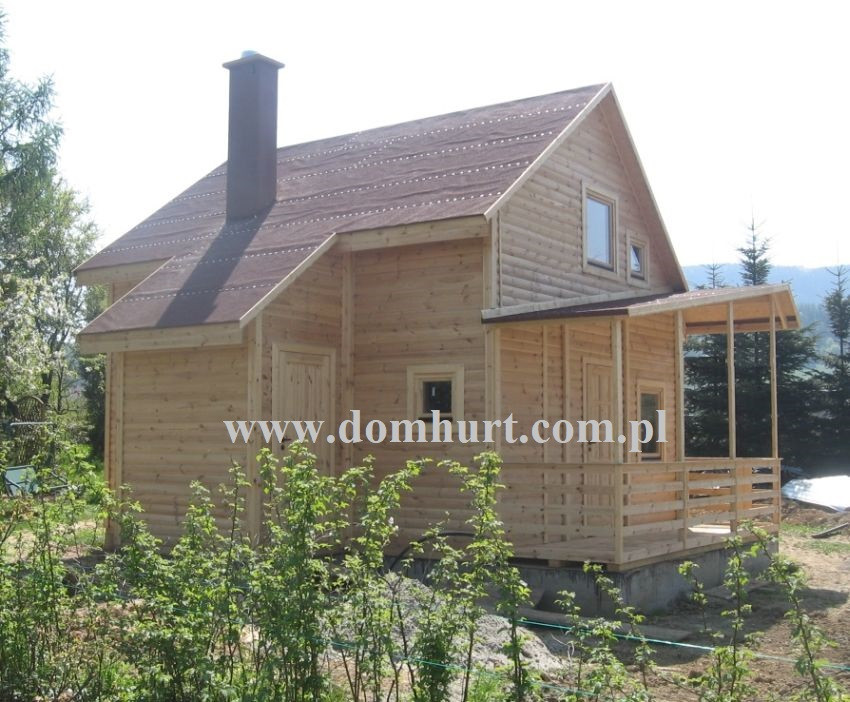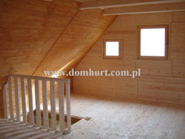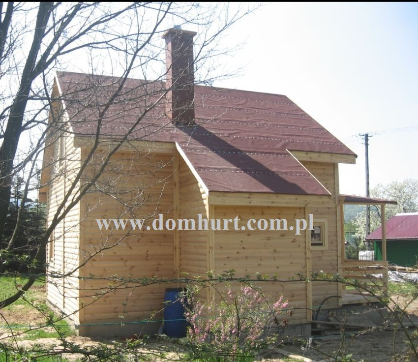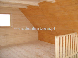 Dom letniskowy wykonany systemem szkieletowym. Wejście do domu przez wiatrołap. Z przodu domu przytulny zadaszony taras. Przestronny parter pozwala na wydzielenie łazienki, kuchni salonu i pokoju. Na poddaszu boczne ścianki pionowe na wys. 68 cm. Dach dwuspadowy symetryczny. Kąt dachu 44o. Konstrukcja domu daje niezliczone możliwości aranżacji wnętrza. Istnieje możliwość zmiany wymiarów domu, wykonania antresoli kosztem poddasza, dobudowy garażu, wiaty, pomieszczenia gospodarczego. Rozrys domu można zobaczyć w dodatkowych fotografiach. Cena nie obejmuje wydzieleń wewnętrznych widocznych na zdjęciach i rzutach domu.