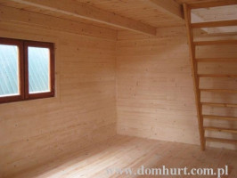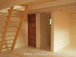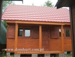 Przestronny dom letniskowy z poddaszem wykonany systemem szkieletowym. Oferowany w wersji ocieplonej wełną 5 cm jak i w wersji bez ocieplenia. W standardzie posiada zadaszony taras, wydzieloną kuchnię, łazienkę i otwarty salon. Poddasze otwarte do zagospodarowania. Konstrukcja domu pozwala na wprowadzanie dowolnych zmian adaptacyjnych i powierzchniowych. Schemat budynku można zobaczyć w dodatkowych fotografiach. Cena nie obejmuje okiennic oraz wydzieleń wewnętrznych widocznych na zdjęciach i rzutach domu. Proponowany o powierzchni całkowitej 65,4 m2