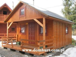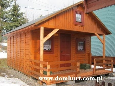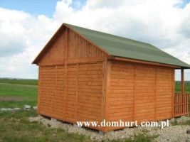 Dom parterowy z antresolą wykonany systemem szkieletowym. Dach dwuspadowy symetryczny. Kąt dachu 30º. W standardzie posiada przestronny taras, antresolę o wym. 400x200 cm, schodki na antresolę, dach kryty papą podkładową, impregnację przeciwogniową i przeciwgrzybiczną drewna, 1 komplet bloczków betonowych. Istnieje możliwość dowolnej aranżacji wnętrza, zmiany powierzchni domku, wydłużenia tarasu czy samego dachu. Dom można także z powodzeniem przystosować pod działalność gospodarczą. Schemat budynku można zobaczyć w dodatkowych fotografiach. Istnieje możliwość zamówienia domu w innych wersjach powierzchniowych.