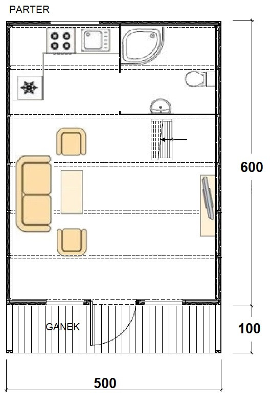 Drewniany dom letniskowy z antresolą na zgłoszenie, o powierzchni parteru 35m2 będący nową odsłoną domów typu brda. W górnej części wykonana antresola o powierzchni 12,18m2. Dom wykonany systemem szkieletowym. Oferowany w wersji ocieplonej wełną gr. 5 cm oraz wełną gr. 10 cm. Wejście do domu przez zadaszony ganek. Na parterze można wydzielić łazienkę, otwartą kuchnię połączoną z pokojem dziennym. Część sypialną zaprojektowano na przestronnej antresoli. Istnieje możliwość powiększenia antrresoli lub przekształenia jej w poddasze. Wysokość ścian parteru +- 240 cm. Kąt dachu: +- 65 stopni. Cena nie obejmuje wydzieleń wewnątrznych widocznych na rzutach domu.