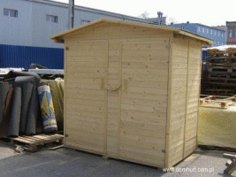 Domek narzędziowy o wym. 200x150 cm wykonany systemem szkieletowym z deski 12 mm. W cenie domku dwoje drzwi drewnianych zamykanych na skobel, podłoga drewniana, po dachu płyta OSB, dach kryty papą podkładową, bloczki betonowe. Wysokość ścian bocznych: 198,5 cm. Całkowita wysokość do szczytu: 215 cm. Domek sprzedawany w całości - nie wymaga montażu.