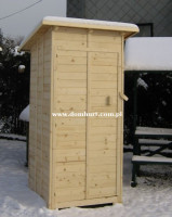 Domek narzędziowy wykonany na bazie szaletu o wym. 95x95 cm. W cenie domku drzwi drewniane, podłoga, dach wykonany z płyty OSB kryty papą podkładową, 1 komplet bloczków betonowych. Wysokość ścian bocznych: 200cm. Domek sprzedawany w całości - nie wymaga montażu.