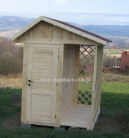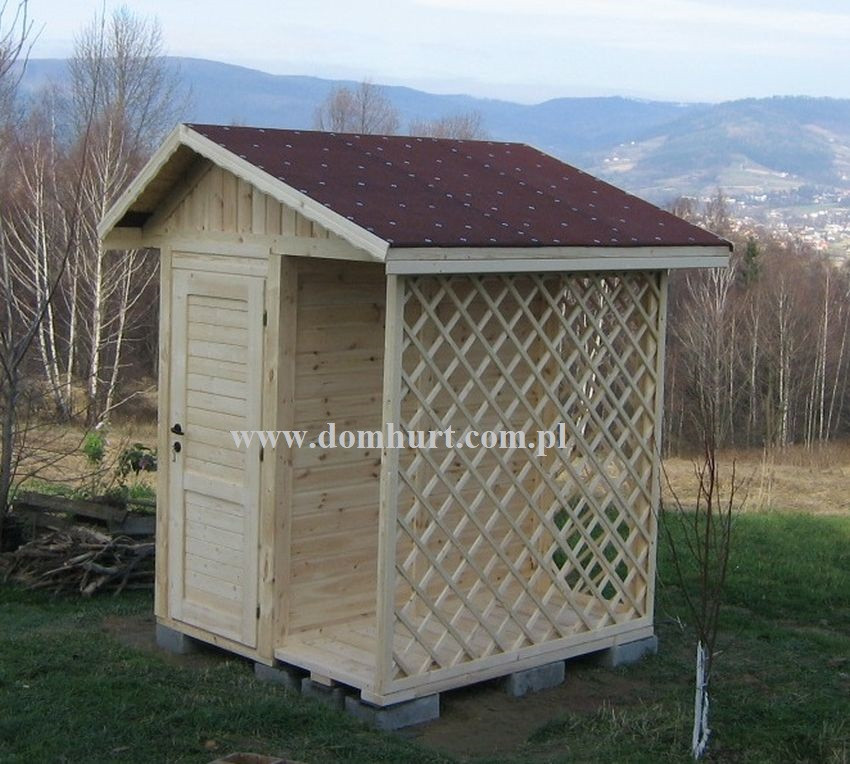 Domek narzędziowy wraz z pergolą wykonany systemem szkieletowym o powierzchni 4 m2. Wymiar domku: 200x200 cm w tym zadaszona pergola o wym. 100x200 cm. W cenie domku drzwi drewniane wraz z zamkiem i kluczem, podłoga drewniana, dach wykonany z płyty OSB kryty papą podkładową, bloczki betonowe. Istnieje możliwość dowolnej modyfikacji rozmiarów domku.