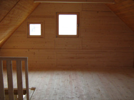 Mieszkalny dom z poddaszem użytkowym wykonany systemem szkieletowym. Wejście do domu przez wiatrołap. Z boku domu przestronny zadaszony taras. Na parterze możliwość wydzielenia łazienki, kuchni oraz salonu . Wejście na poddasze schodami 2-zabiegowymi. Na poddaszu zastosowano ścianki boczne kolankowe na wysokość 68 cm. Dach dwuspadowy symetryczny. Przestronne poddasze można przeznaczyć na 2 lub 3 sypialnie. Konstrukcja domu daje możliwość dowolnej aranżacji wnętrza oraz dobudowy garażu , wiaty, ... itp. Dom oferowany jest także w wersji z dachem niesymetrycznym .Rozrys domu można zobaczyć w dodatkowych fotografiach.