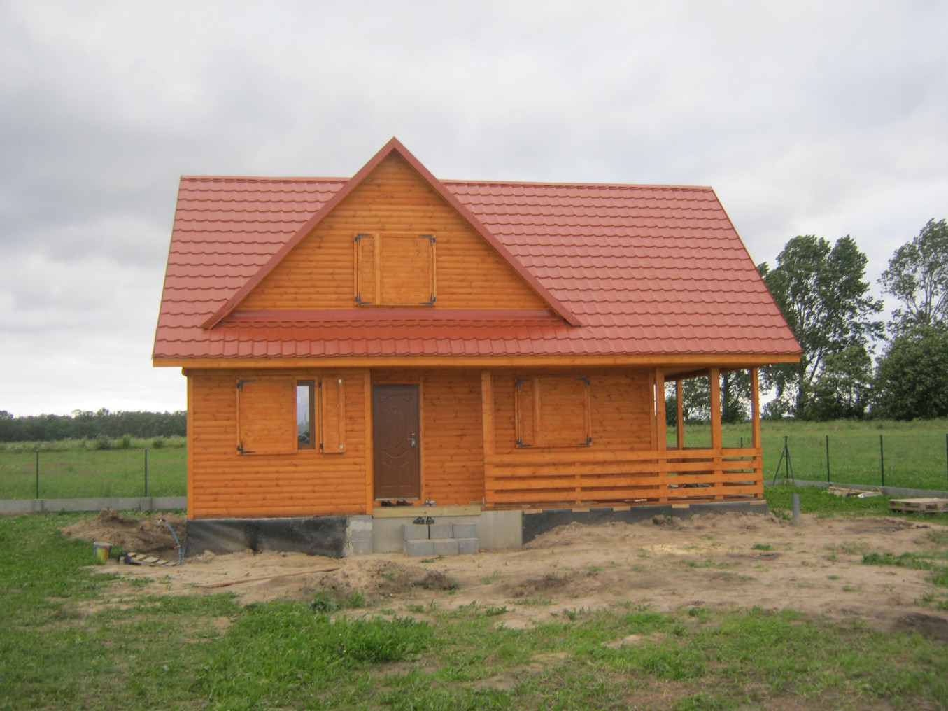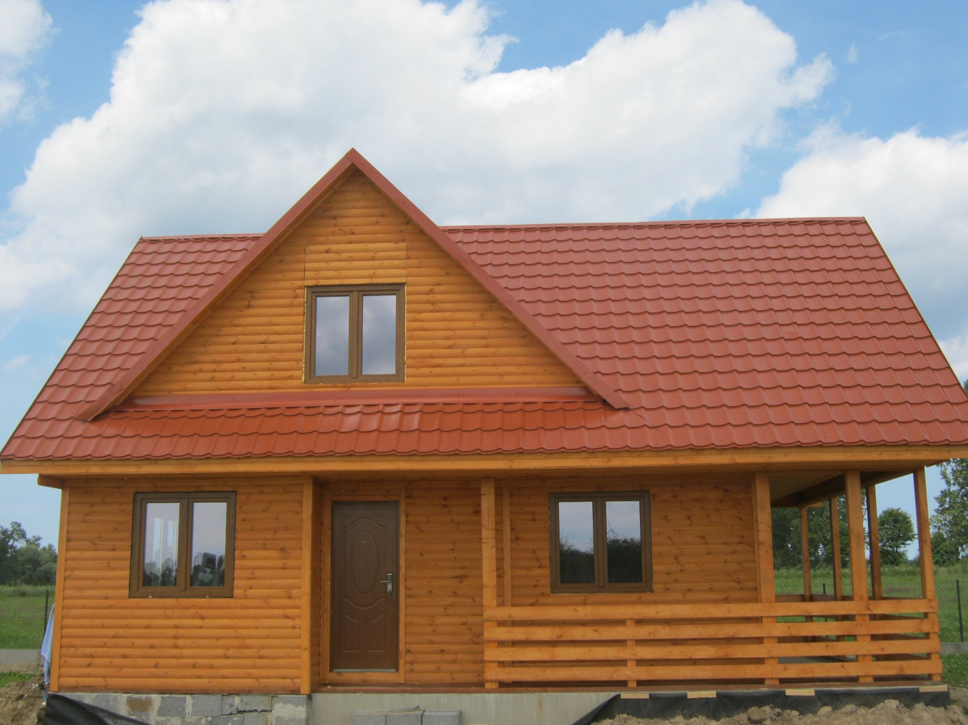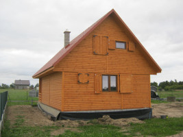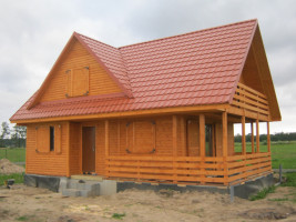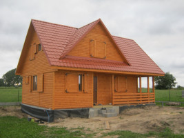 Przytulny drewniany dom mieszkalny w konstrukcji szkieletowej. Na parterze posiada przestronny taras, wydzielony salon, kuchnię oraz jadalnię. Na poddaszu istnieje możliwość wydzielenia 3-4 sypialni oraz łazienki. Wymagany fundament. Kąt nachylenia dachu: 45 stopni. Oferowany także z elewacją zewnętrzną w tynku akrylowym. Schemat budynku można zobaczyć w dodatkowych fotografiach. Powierzchnia domu 109 m2