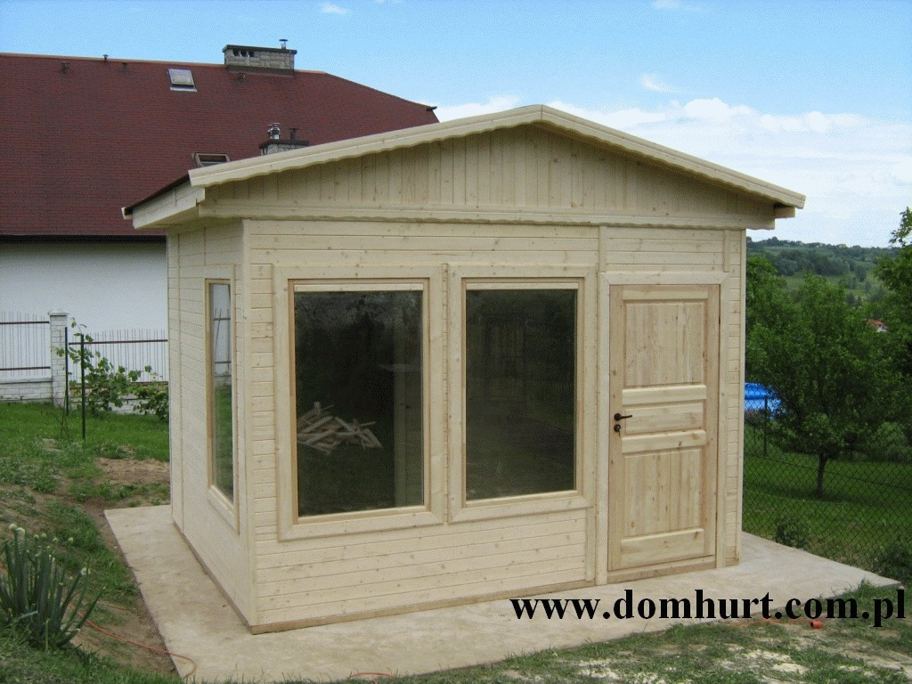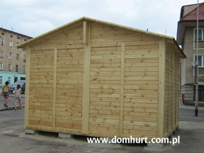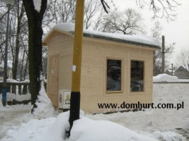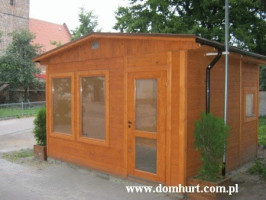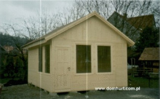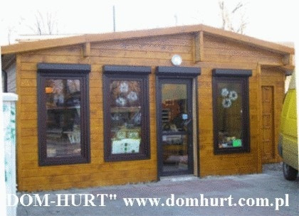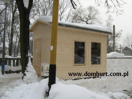 Firma P.P.H.U. "DOM-HURT" oferuje pawilony na typowo handlową działalność całoroczną. Po niewielkich zmianach mogą one służyć jako wygodne i przestronne całoroczne domki ogrodowe. W standardzie pawilony ocieplane są wełną mineralną o grubości 5 cm z paroizolacją, wykończone wewnątrz płytą OSB, boazerią lub płytą kartonowo-gipsową, dach kryty papą podkładową z możliwością zastosowania innego pokrycia dachowego. Pawilony posiadają stałe okna wystawowe o wym. 100x156 cm bez szyb oraz okna otwieralne okna74x74cm z szybami zespolonymi. Ich konstrukcja umożliwia zastosowanie dowolnej liczby okien i drzwi. Wysokość wnętrza pawilonu wynosi do 2,5 m do 3 m. Ogólne rozrysy pawilonów można zobaczyć w dodatkowych fotografiach. Firma wykonuje także pawilony w oparciu o projekty dostarczone przez klienta.